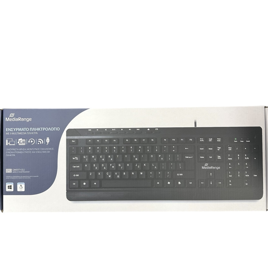 MediaRange Ενσύρματο πολυμέσο πληκτρολόγιο, QWERTY (GR) T1, μαύρο