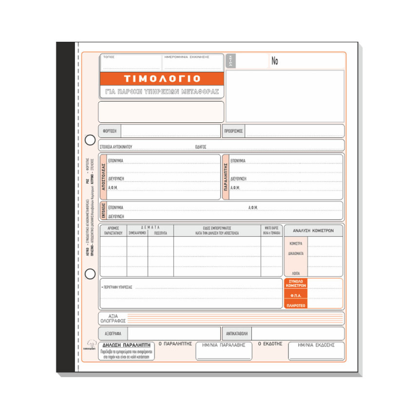ΤΥΠΟΤΡΑΣΤ Τιμολόγιο Παροχής Υπηρεσιών Μεταφοράς No 254δ 19x20cm 50x4